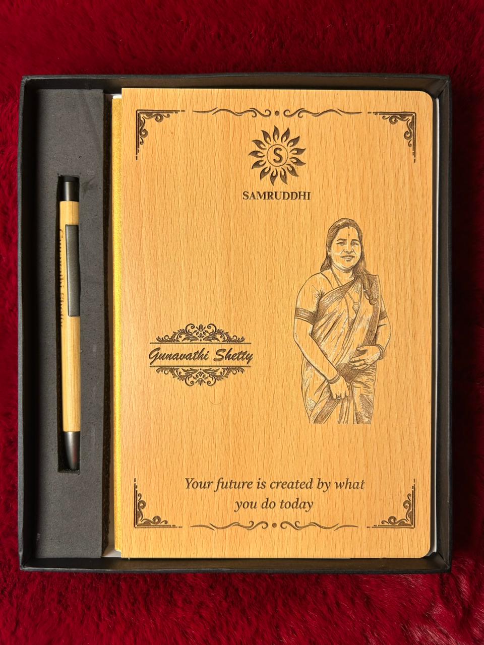 Make your gifting unforgettable with our premium wooden engraved diary set, customized with your photo, name, and message. Perfect for birthdays, anniversaries, and corporate gifts.